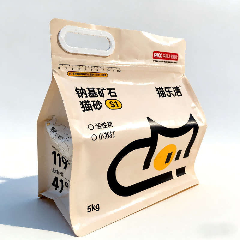 Kaheksapoolne tihendusstruktuur hoiab koti stabiilsena ja püsti, mis sobib ideaalselt silmapaistvate riiulite jaoks. See hõlbustab ka stabiilset virnastamist ja mugavat ladustamist. Tõmblukuga käepide tagab turvalise ja usaldusväärse tihendi, takistades niiskuse ja tolmu sisenemist isegi korduval avamisel ja sulgemisel. Lisaks võimaldab tugevdatud plastikust käepideme konstruktsioon hõlpsasti käsitseda 5 kg kassiliiva, mis parandab kasutuskogemust.