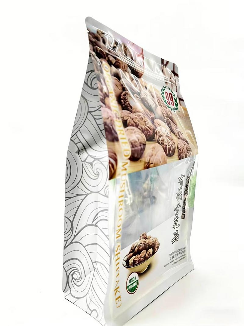 Pakendi valik mõjutab otseselt kuivatatud puuviljade säilitamist ja esitlemist. Peamised turul saadaolevad pakenditüübid hõlmavad kolmepoolset tihendit, neljapoolset tihendit, püstikuid ja kaheksapoolseid tihendikotte. Nende hulgas on eelistatud valik kaheksapoolse tihendiga kott. Võrreldes teiste kotitüüpidega on kaheksapoolsel pitsikotil kaheksa suletud serva, mis võimaldavad sellel tasase põhjaga püsti seista, mistõttu on see ideaalne poeriiulitel eksponeerimiseks. Sellel kotitüübil on viis külge kaubamärgi kujundamiseks ja seda saab kohandada erinevate graafikatega, muutes selle sobivaks nii jaemüügiks kui ka e-kaubanduseks.